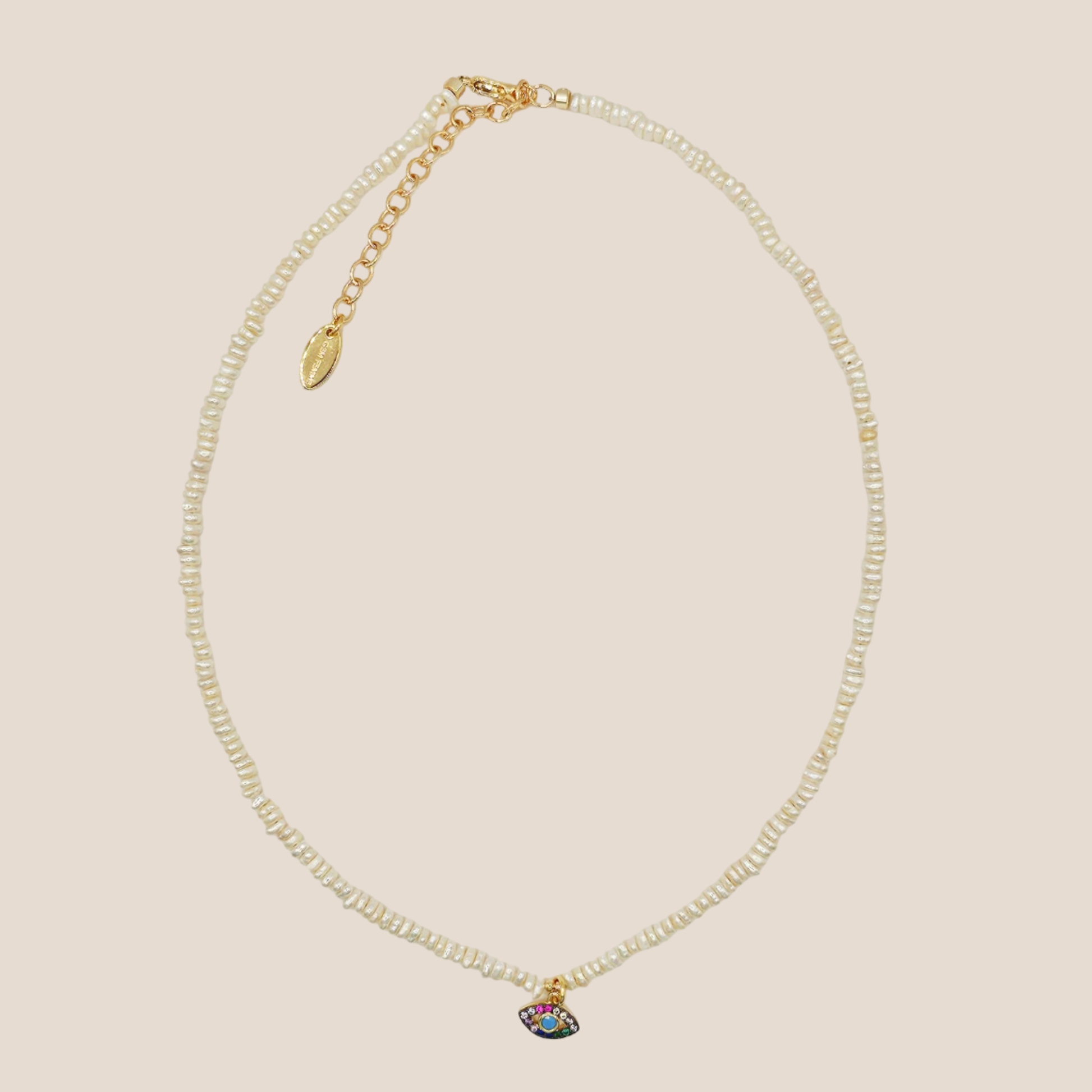 - Available in: White Pearl with Midnight Blue Evil Eye Pendant.