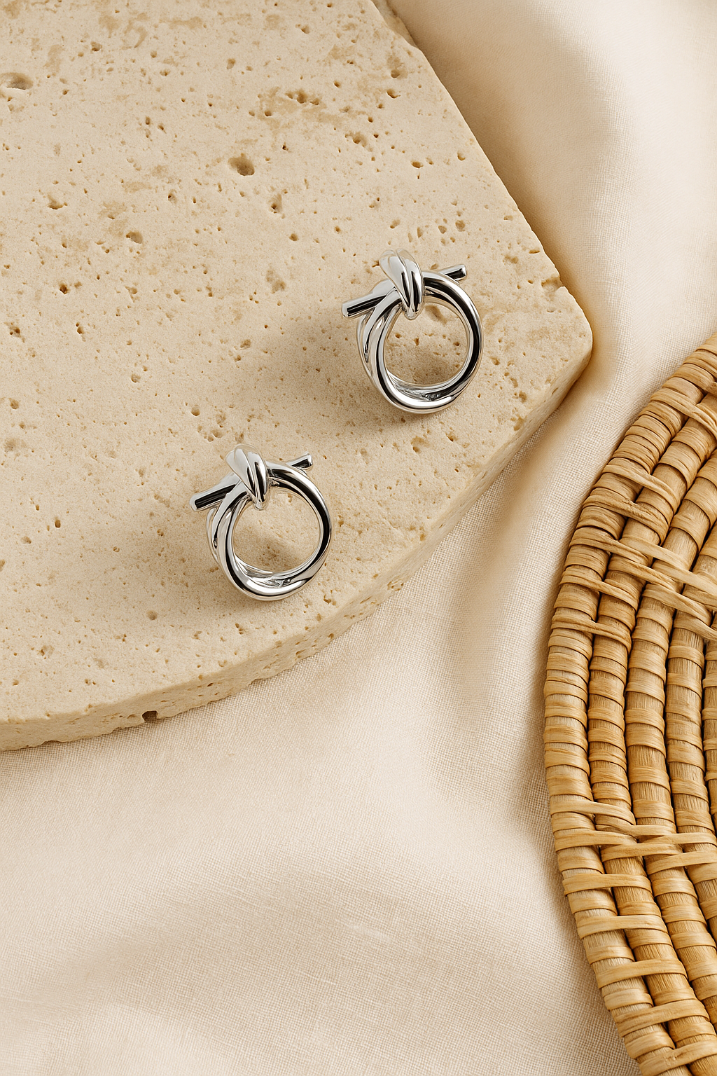 Crafted with polished curves and a sculptural knot at the top, the Inez Earrings bring both structure and softness to your everyday. Thoughtfully bold, endlessly wearable.