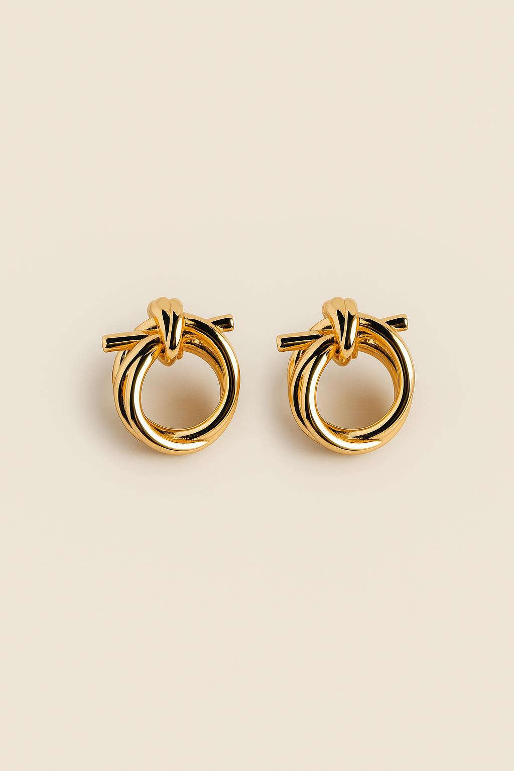 Crafted with polished curves and a sculptural knot at the top, the Inez Earrings bring both structure and softness to your everyday. Thoughtfully bold, endlessly wearable.