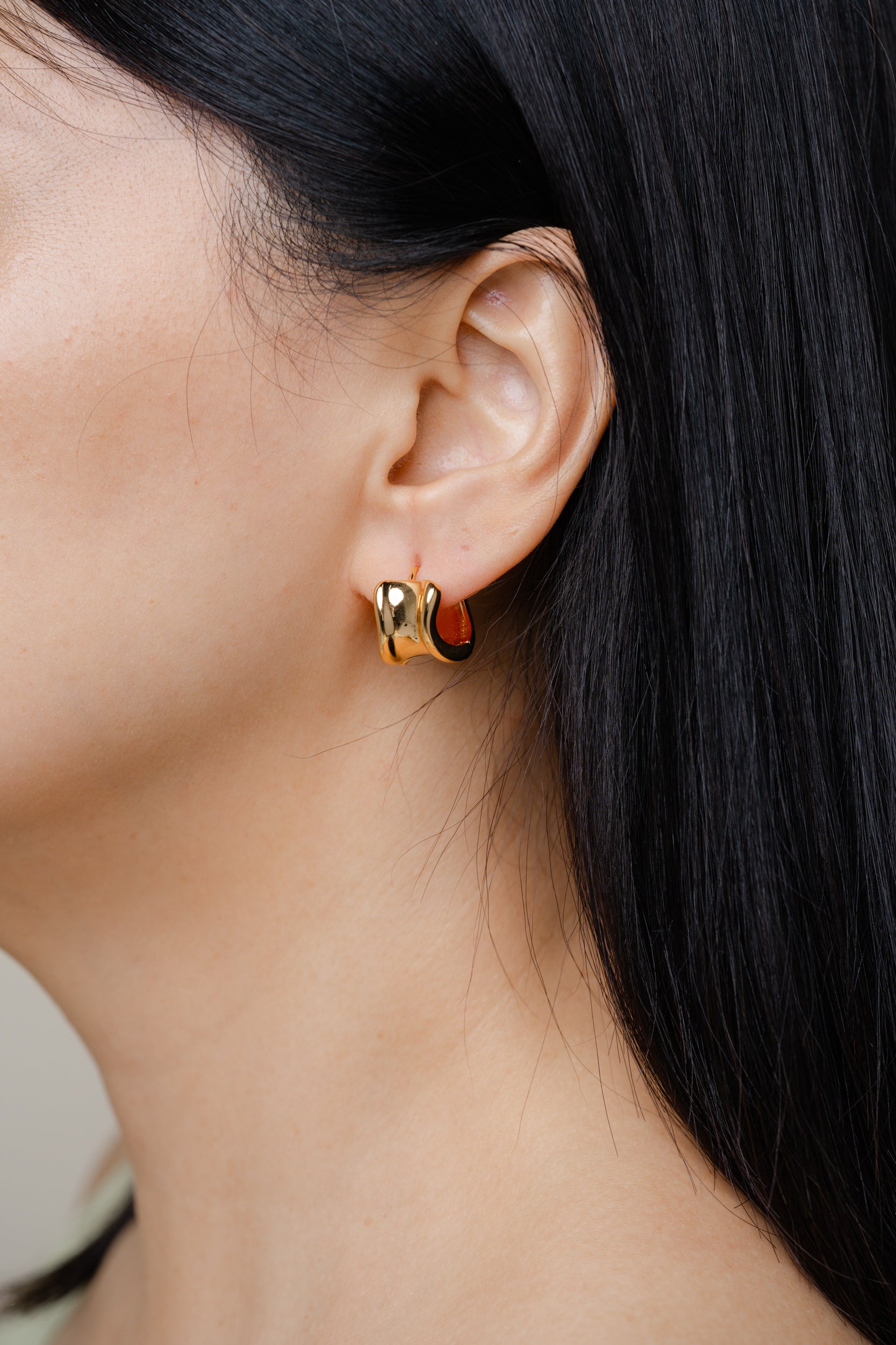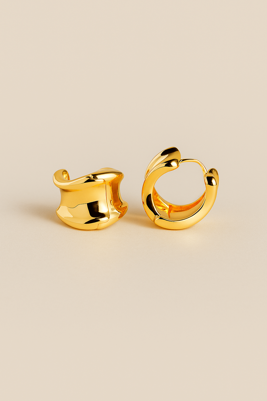 Bold yet effortless, the Cuff Huggies reimagine classic hoops with fluid curves and a modern sculptural edge. Their compact silhouette makes them a versatile staple — polished enough for evening, minimal enough for every day.
