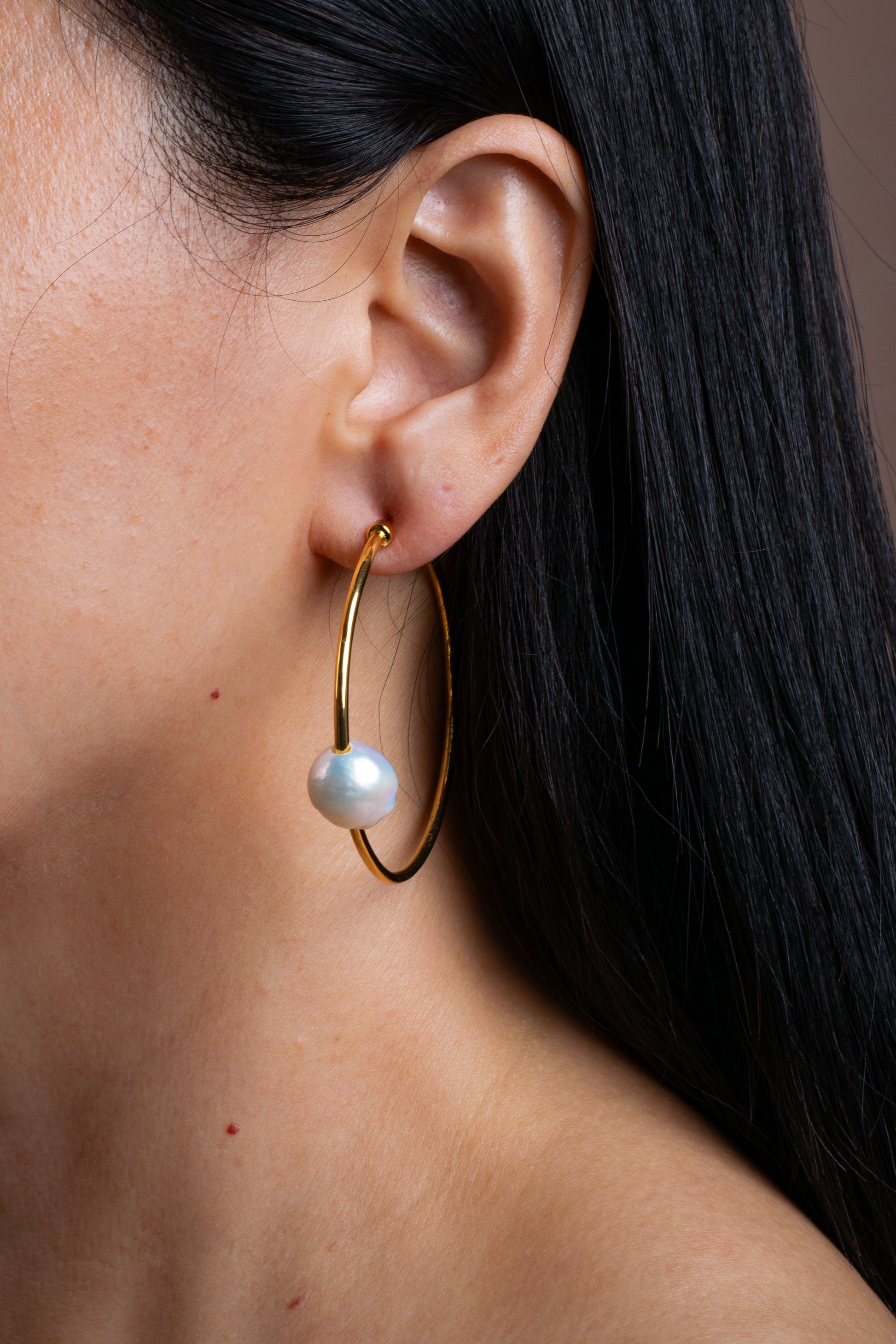 - Design: A classic hoop silhouette reimagined with a softly suspended freshwater pearl, creating gentle movement and a sense of modern harmony.