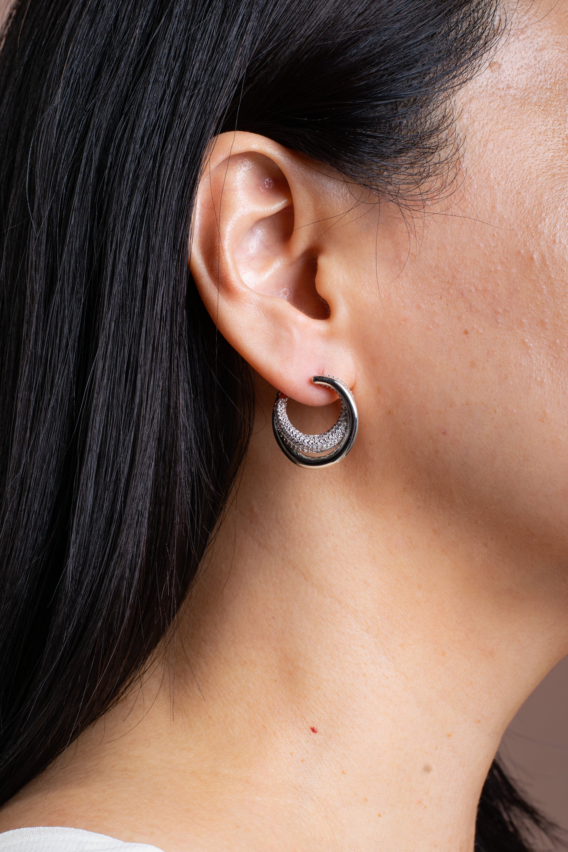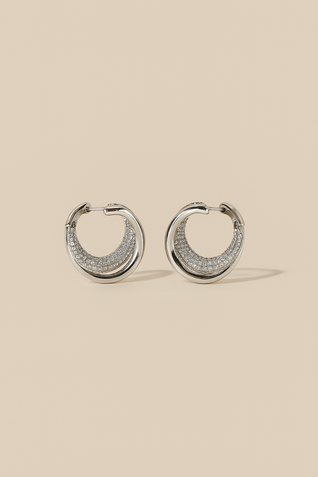 - Design: Sleek silver hoops with delicate crystal sparkle, crafted for modern simplicity and enduring charm.
