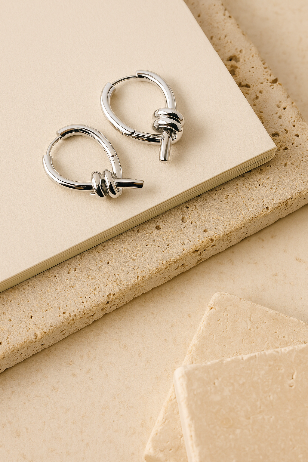 Design: Sculptural teardrop hoops with a front knot detail — clean lines, subtle edge, and a touch of sentiment in every curve.